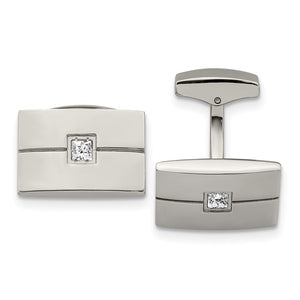 Stainless Steel & Princess CZ Rectangle Cuff Links, 19 x 12mm