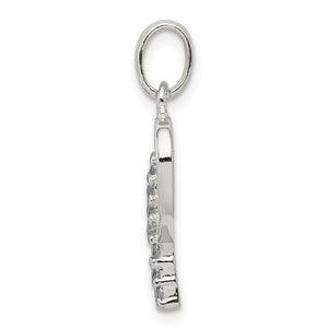 Adding a touch of glamour to your favorite initial is seven prong-set clear cubic zirconia gemstones. This gleaming pendant is fashioned from sterling silver and will fit up to a 4mm width classic style chain. Each letter P is approximate 14mm (9/16 inch) in width by 24mm (15/16 inch) in length, which includes the bail. Chain not included.