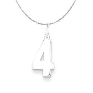 Celebrate your favorite sports player, lucky number or milestone date in your life with a prominent rhodium-plated sterling silver charm. This laser cut polished number is approximately 16mm (5/8 inch) in length and is finished with a classic jump ring that will accommodate up to a 3mm chain. Includes a 1.25mm, 20 inch sterling silver cable chain.