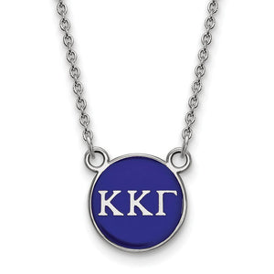 Sterling Silver Kappa Kappa Gamma Small Blue Enamel Disc Necklace