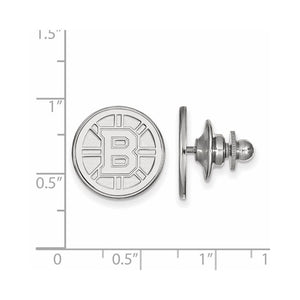It is time to celebrate your favorite team, the Boston Bruins! This NHL lapel pin or tie tac created from rhodium-plated sterling silver is crafted in the USA. We are a certified retailer and this authentic item is officially licensed by the Boston Bruins. The approximate size is 15mm (9/16 inch) in width by 15mm (9/16 inch) in length.