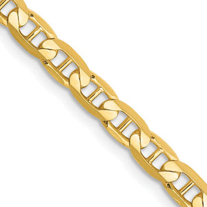 Make a splash with nautical designed jewelry and anchor your style in 14-karat yellow gold with our incredible concave chain. This 3.75mm chain features a solid link construction and a hand-polished finish to give it a radiant shine. The lobster-claw closure provides a secure, worry-free fit. 24 inches in length.