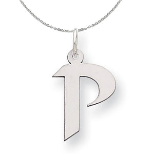 Initial attraction in an artisan block design fashioned from polished sterling silver. Each upper case letter is approximately 15mm (9/16 inch) in length and dangles from a classic jump ring that will fit up to a 3mm width chain. Includes a 1.25mm, 20 inch sterling silver cable chain.
