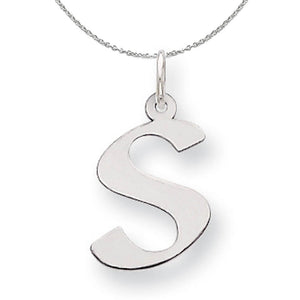 Initial attraction in an artisan block design fashioned from polished sterling silver. Each upper case letter is approximately 15mm (9/16 inch) in length and dangles from a classic jump ring that will fit up to a 3mm width chain. Includes a 1.25mm, 16 inch sterling silver cable chain.