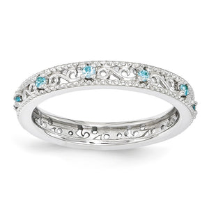 3mm Sterling Silver Stackable Expressions Blue Topaz Scroll Band - Black Bow Jewelry Company