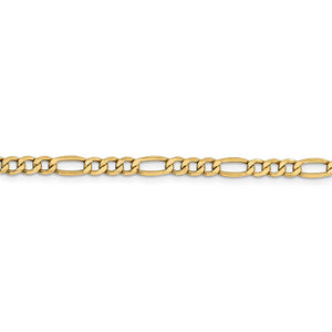 A set of three round links separated by one long oval link creates a sensational repeating pattern on this traditional figaro design. Measuring 4.75mm in width, this gorgeous 14k yellow gold semi-solid chain finished with a secure, lobster-claw clasp is hand-polished to give it a radiant finish. 8 inches in length.