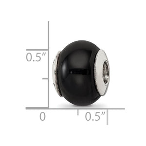 Natural Black Agate Stone Rounded & Sterling Silver Bead Charm, 13mm
