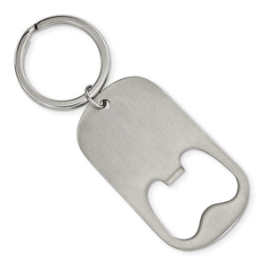 Key chains are probably the easiest gift to give because everyone uses one every day.�This brushed stainless steel key chain features a split key ring that is approximately 28mm (1 1/8 inch) in diameter. The functional bottle opener key fob is approximately 31mm (1 1/4 inch) in width by 56mm (2 1/8 inch) in length. Total length 86mm (3 3/8 inch). Suitable for engraving.