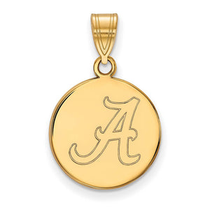 14k Gold Plated Silver U. of Alabama Medium Initial A Disc Pendant - Black Bow Jewelry Company