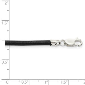 3mm Black Leather Cord Chain & Sterling Silver Clasp Necklace