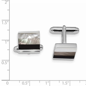 Rhodium Plated Sterling Silver, Onyx & White/Grey MOP Cuff Links, 13mm