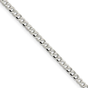 An array of sterling silver curb links join together to create the sleek style for this 3.2mm width chain that closes with a lobster-claw clasp. It features a solid link construction with beveled edges and a gleaming, polished finish. 22 inches in length.