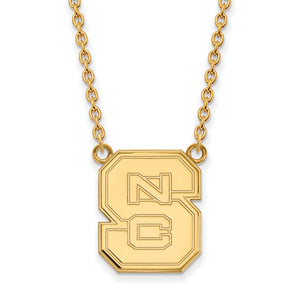 If you are a fan of North Carolina State University and the Wolfpack then you need to show your school spirit with this North Carolina State University necklace. We are a certified retailer and this authentic item is officially licensed. It is crafted from 14k yellow gold plated sterling silver and crafted in the USA. 18 inches in length. This item is not currently in-stock. Once you place your order, please allow us 5 to 7 business days to make it for you.