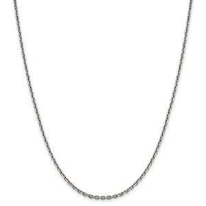 Indulge in the luxury of rhodium-plated 14k white gold with this sparkling, 2.5mm width cable chain enhanced with diamond-cut links. It includes a lobster-claw clasp and the solid link design promises long-lasting beauty. 24 inches in length.