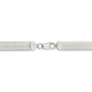Silky smooth links of sterling silver form a flat and flexible herringbone chain that will elevate your style with its sophisticated charm and refined design. This beautiful, polished chain measures 8.75mm wide and closes a classic, lobster-claw closure. 24 inches in length. Made in Italy.