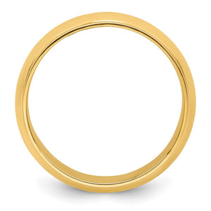 A simple curving band of 14k yellow gold combines tradition with today's trends. This polished ring features a dome style center with narrow ridged edges and a standard fit shank. It is approximately 1.4mm in thickness (standard weight) and 8mm in width. Suitable for engraving.