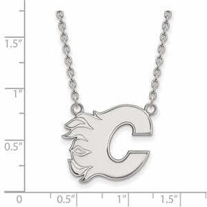 Sterling Silver NHL Calgary Flames Large Necklace, 18 Inch - Black Bow Jewelry Company
