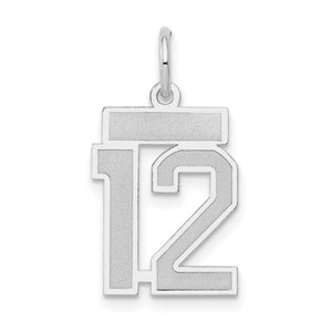 14k White Gold, Jersey Collection, Small Number 12 Pendant