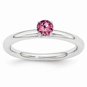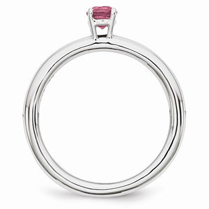 Rhodium Plated Sterling Silver Stackable 4mm Pink Tourmaline Ring