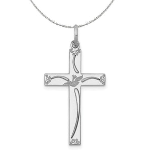 Sterling Silver 25mm Laser Etched Cross Necklace - Black Bow Jewelry Company