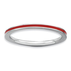Create the perfect stack with enameled bands available in 10 vibrant colors. Featuring a center stripe of red enamel this 1. Mm sterling silver band is finished with tarnish resistant rhodium plating so it will retain its bright polished luster. Guaranteed to fit together perfectly with all of the mix and match Stackable Expressions rings.