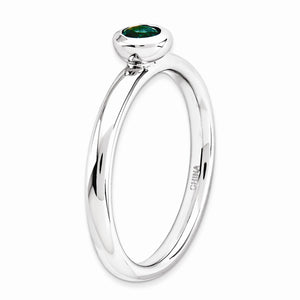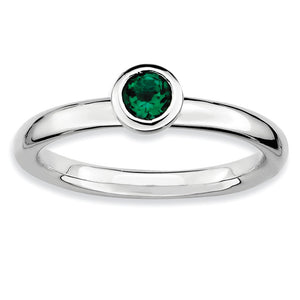 Stackable Low Profile 4mm Created Emerald Silver Ring