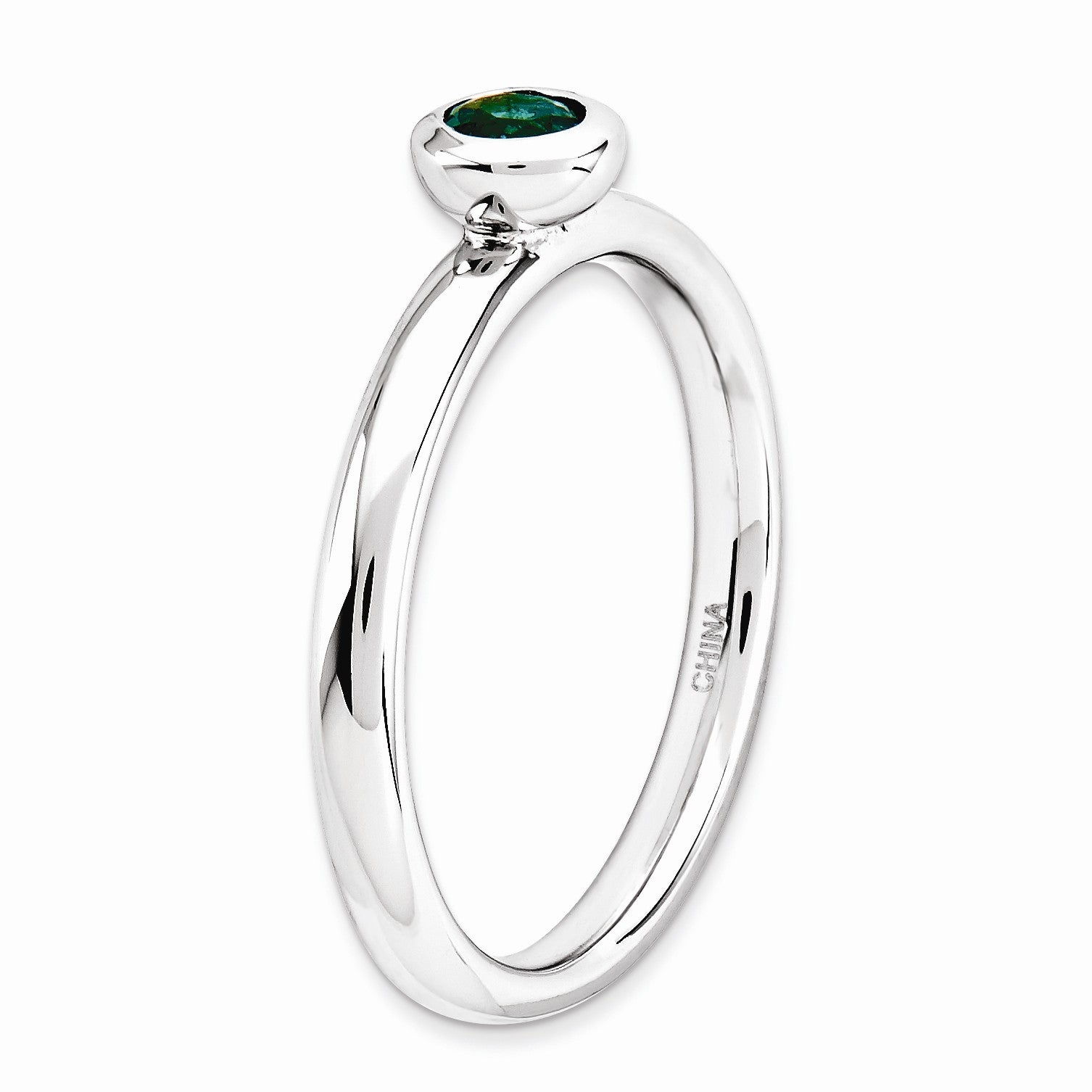 Created Emerald, May's birthstone symbolizes luck, creativity and well-being; bringing wisdom and reason. This 2.5mm band fashioned from rhodium plated sterling silver is bezel set in a low profile mounting with a 4mm round gemstone that will add vibrant color to your finger. Guaranteed to fit together perfectly with all of the mix and match Stackable Expressions rings.