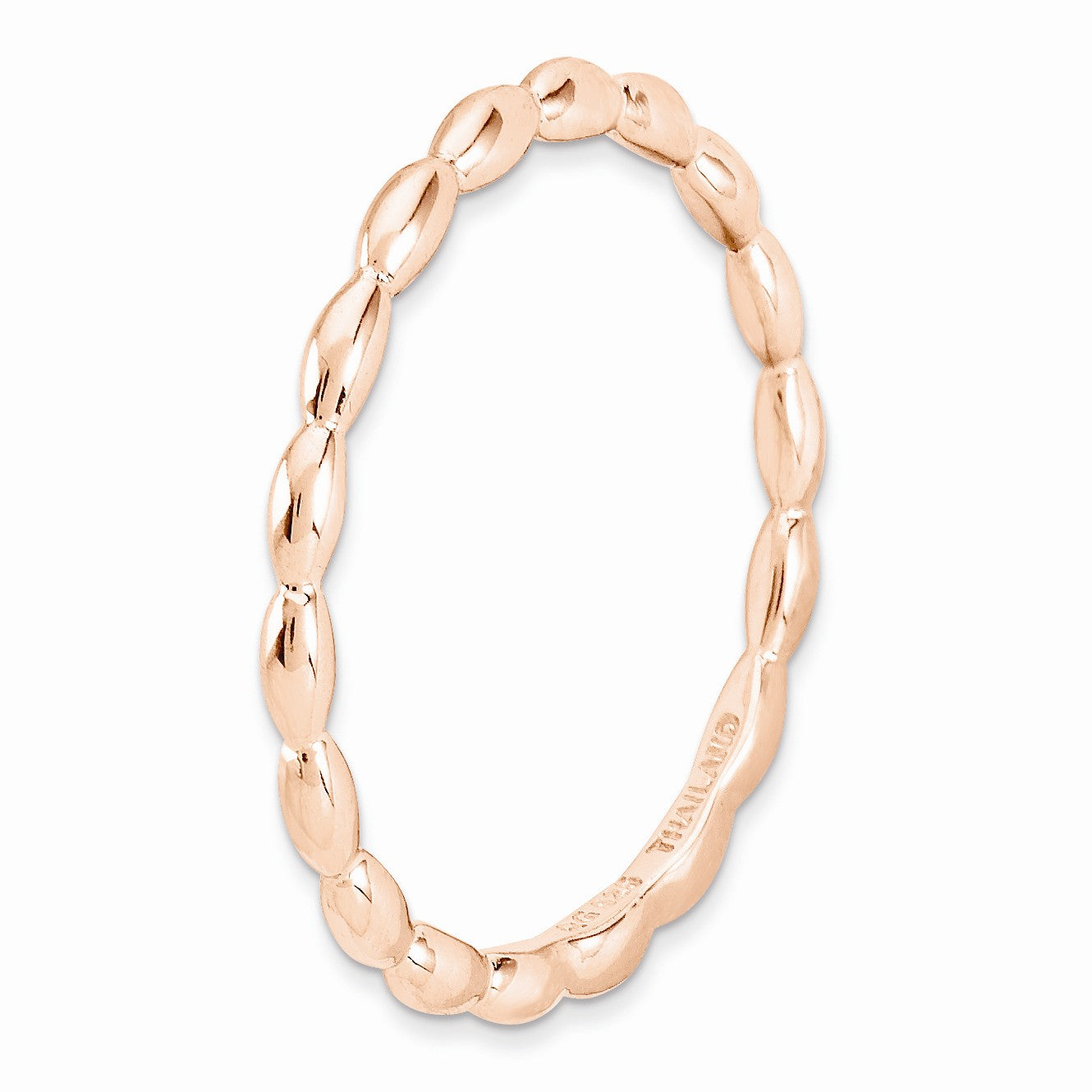 Make it simple and stylish with bands of different textures, finished, widths and colors! This 14k rose gold plated sterling silver band features a rice bead design with a high polished finish that measures 1. Mm wide. Guaranteed to fit together perfectly with all of the mix and match Stackable Expressions rings.