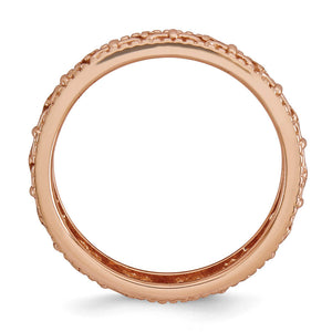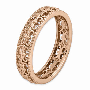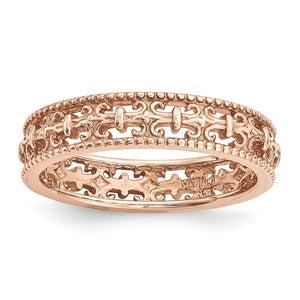 Make it simple and stylish with stackable bands of different textures, finishes, widths and colors! This rose gold tone plated sterling silver band features a carved fleur-de-lis design with a polished finish that measures 4. Mm wide. Guaranteed to fit together perfectly with all of the mix and match Stackable Expressions rings.