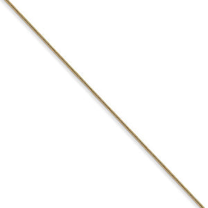 A smooth and flexible snake chain with its classic round design will show off your favorite pendant or charm to perfection. Fashioned from solid 14k yellow gold, this polished necklace measures 0.65mm in width and is finished with a lobster-claw closure to ensure a safe fit. 16 inches in length.