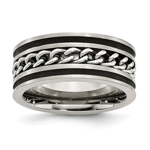 Stainless Steel And Black-plated 10mm Chain Comfort Fit Band - Black Bow Jewelry Company