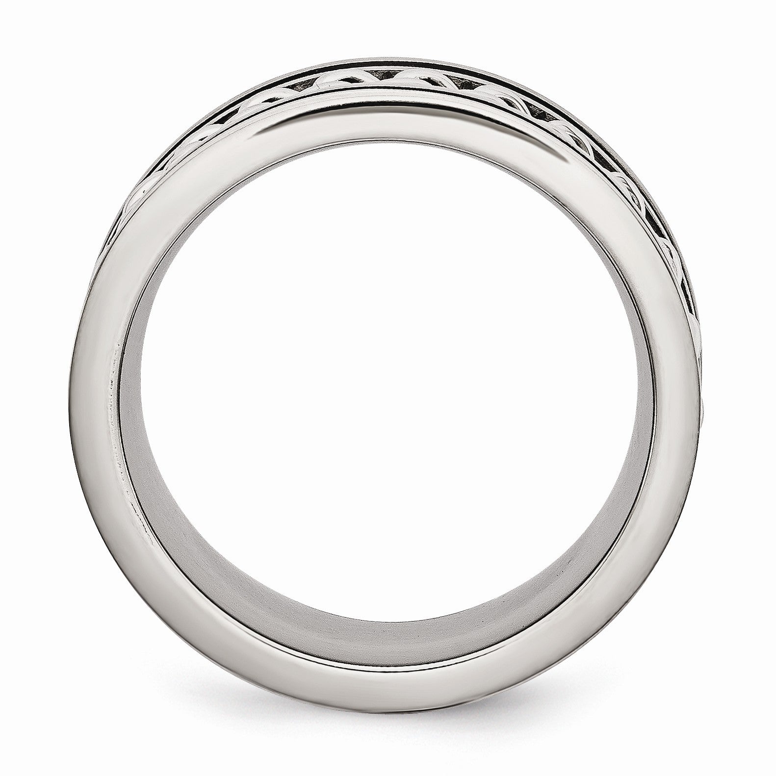 Refine your style with a distinctive ring crafted from 316L stainless steel that mirrors your unique personality. This 10mm brushed and polished band features a curb chain inset highlighted with black-plated stripes and a comfort fit interior. Wide bands fit tighter on the finger, so you might want to consider moving up a size for a more comfortable fit.