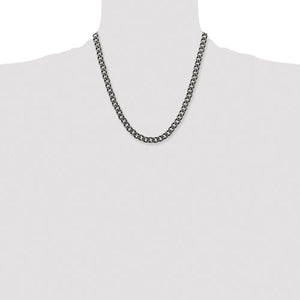 Curving geometric lines combined with the polished oxidized tone as well as the inertness of stainless steel make this 24-inch necklace chain an excellent choice for everyday wear. The heavy curb links measure 7.5mm in width and close with a fancy lobster clasp.