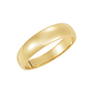 Sleek and simple with a classic low dome profile designed from polished 10k yellow gold. This standard fit 5mm wide band tapers to approximately half the width at the bottom and is suitable for engraving. This is a made to order item and is estimated to ship 11/24/2025