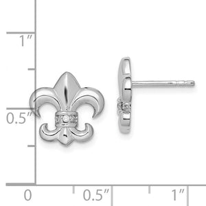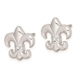 13mm Cubic Zirconia Fleur De Lis Post Earrings in Sterling Silver - Black Bow Jewelry Company
