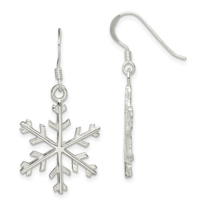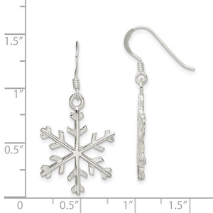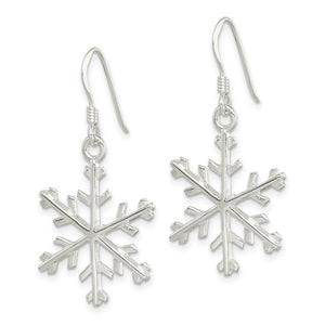 Sterling Silver Polished Snowflake Dangle Earrings - 7/8 Inches - Black Bow Jewelry Company