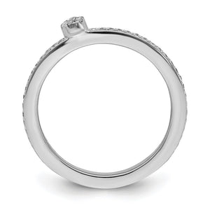 Make it simple and stylish with bands of different textures, finishes, widths and colors or extravagant with diamonds and gemstones! This stackable ring created from rhodium-plated 14k white gold features 7 genuine white topaz totaling 1/10 of a carat and 24 genuine diamonds totaling 1/8 carat. The natural diamonds are I2 in clarity and I-J in color. The approximate band width is 2mm and the top head width is 3mm. Guaranteed to fit together perfectly with all of the mix and match Stackable Expressions rings.
