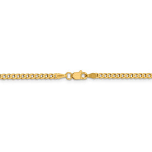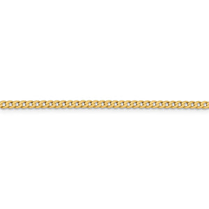 Flat curb links of 14k yellow gold enhanced with beveled edges form an attractive bracelet that looks great alone, layered with multiple chains or paired with a gold charm to complete your desired style. It measures 2.25mm in width by 8-inches in length and closes with a lobster claw clasp.