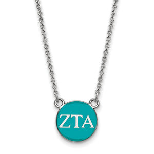 Sterling Silver Zeta Tau Alpha Small Turqouise Enamel Disc Necklace
