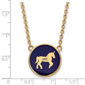 14K Plated Silver Delta Phi Epsilon Large Blue Enamel Mascot Necklace