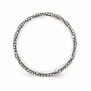 Make it simple and stylish with stackable bands of different textures, finishes, widths and colors! This sterling silver band features a textured design with an antiqued and polished finish that measures 2.5mm wide. Guaranteed to fit together perfectly with all of the mix and match Stackable Expressions rings.