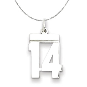 Silver, Athletic Collection, Small Polished Number 14 Necklace
