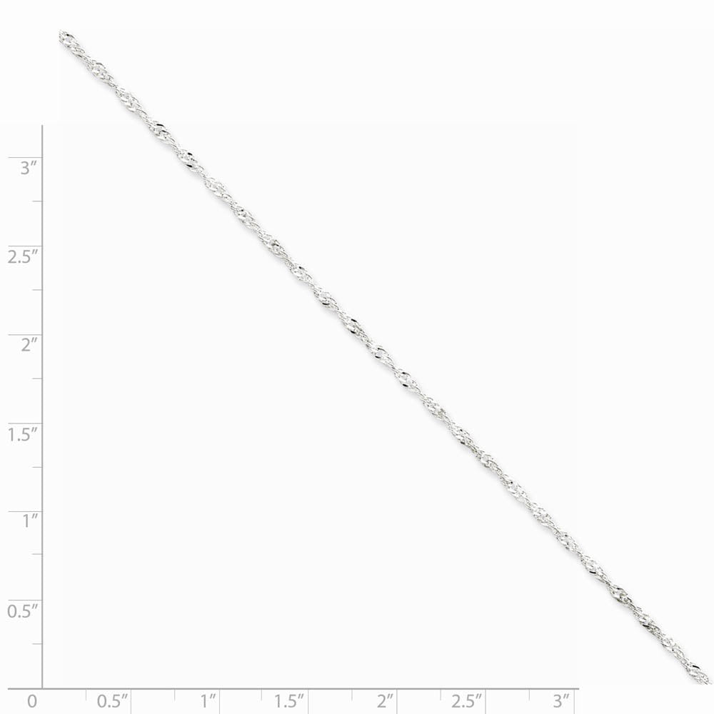 Sterling Silver 2mm Twisted Singapore Chain Anklet, 9-10 Inch - Black Bow Jewelry Company