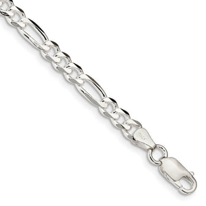Round and oval links made of polished sterling silver interlock in a reoccurring three and one pattern that closes with a lobster claw clasp. The easy elegance of a solid Figaro chain looks great with dress or casual wear and the 5.25mm width, 9-inch length is perfect as a bracelet or anklet. Made in Italy.