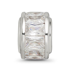 Illuminate your bracelet or necklace with a variety of exquisite gemstone charms that can be rearranged, as you like to match your outfit or mood. This sterling silver charm features clear colored, baguette shaped, cubic zirconia stones and measures approximately 6mm in width by 12mm in length with a 4mm core. All of our charms are interchangeable as well as compatible with Reflections and other popular 3mm width bead style bracelets and necklaces. Made in Italy.