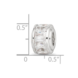 Sterling Silver and Baguette Clear Cubic Zirconia Bead Charm, 12mm