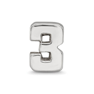 Sterling Silver Block Style, Number 3 Bead Charm - Black Bow Jewelry Company