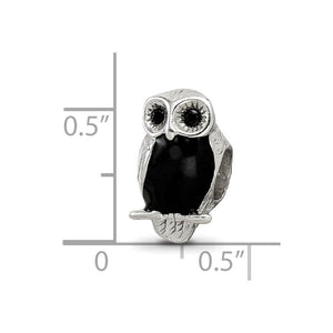 Sterling Silver, CZ and Black Enameled Wise Owl Bead Charm - Black Bow Jewelry Company