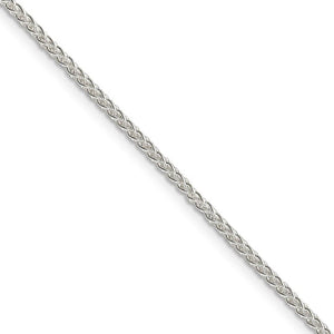 Sterling silver links are plaited together to create a fantastic spiga design for this 1.75mm width, 16-inch long chain that closes with a lobster claw clasp. It features a solid link construction with a gleaming, polished finish. Made in Italy.