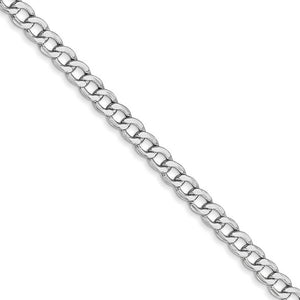 • A beautiful basic chain, perfect for showcasing for your favorite white gold pendant or combined with other chains to create a layered look. Measuring 3.35mm in width by 26-inches in length, this classic hollow link curb necklace crafted from rhodium-plated 14k white gold closes with a lobster-claw clasp.